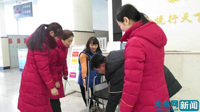 在工作間歇,李厚萱向客運(yùn)人員討教車次、方向等知識(shí)和回答旅客疑問的技巧,同時(shí)李厚萱也當(dāng)起了客運(yùn)人員的老師,用自己的親身經(jīng)歷告訴客運(yùn)人員該如何服務(wù)與她一樣容易骨折以及坐輪椅的旅客。