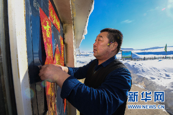 2月15日,農(nóng)歷大年三十,白玉華在管護(hù)站貼對聯(lián)。新春時(shí)節(jié),大興安嶺林區(qū)銀裝素裹,冰封大地。在阿爾山市林業(yè)局杜拉爾溝管護(hù)站,林區(qū)管護(hù)員白玉華堅(jiān)守在崗位上。30多平方米的管護(hù)站里燒著火墻和炕,但是依然冰涼。由于地處偏遠(yuǎn),這里仍沒有通上電。在微弱的燭光下,白玉華為自己準(zhǔn)備了一個(gè)燉菜和一盤餃子作為年夜飯。他從事森林管護(hù)工作28年,2月15日是他第18個(gè)獨(dú)自一人值守崗位的除夕。新華社記者 劉磊 攝