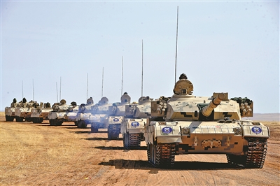 上圖:該旅官兵駕駛戰(zhàn)車快速機動。陸學權(quán)攝
