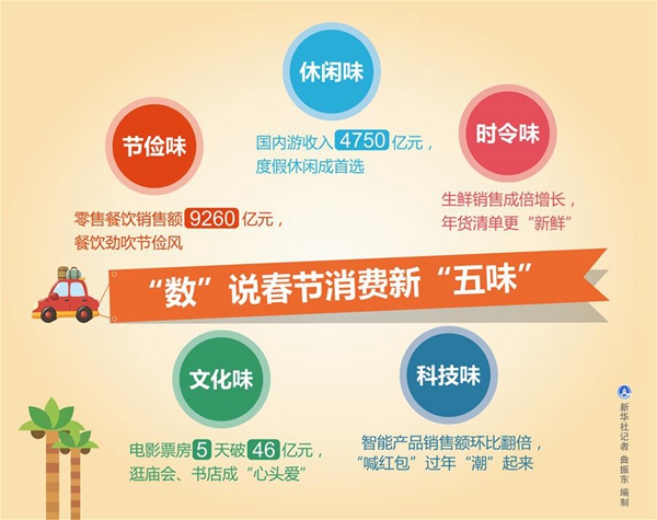 圖表:“數(shù)”說春節(jié)消費新“五味” 新華社記者 曲振東 編制
