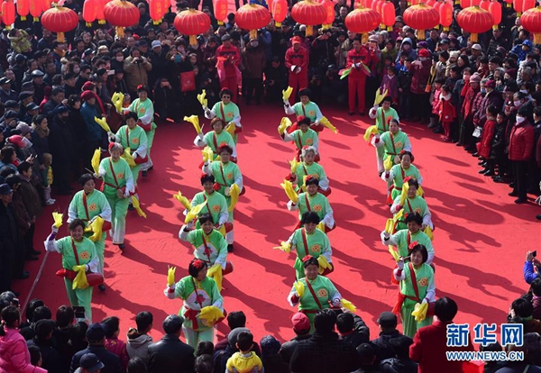 2月22日,在河北省滄州市新華區(qū)舉行的“民俗展演鬧新春”活動上,腰鼓愛好者在表演腰鼓。當(dāng)日是正月初七,各地舉行豐富多彩的民俗文化展演活動,熱熱鬧鬧歡慶新春。 新華社發(fā)(傅新春 攝)