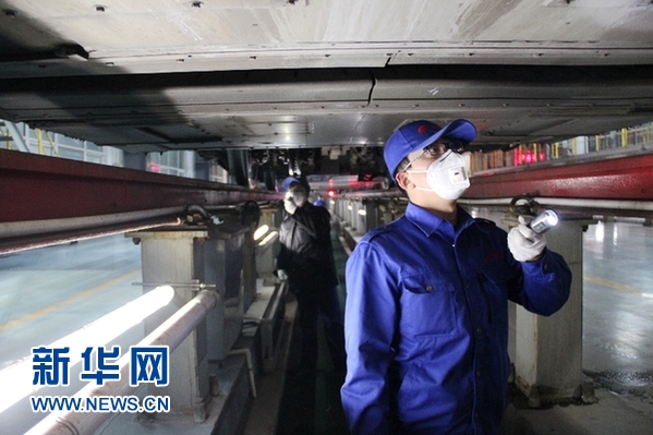 一同下到檢修道的楊碩提醒記者,在車底檢修的兩名小伙兒使用的手電筒可“大有玄機(jī)”。它在照明的同時(shí)還一直在錄像,相關(guān)資料會(huì)上傳到系統(tǒng)里,由電腦再次進(jìn)行智能檢測。