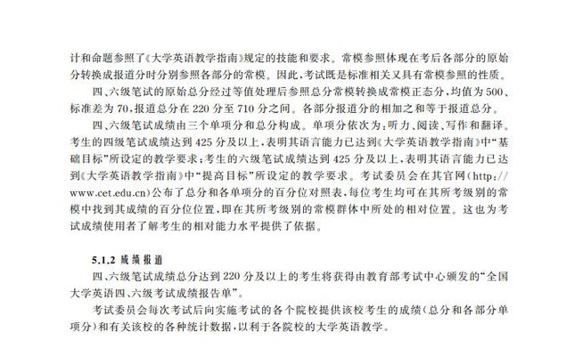 關(guān)于“大學(xué)英語四、六級考試分?jǐn)?shù)解釋”,官網(wǎng)給出的解釋全文如下: