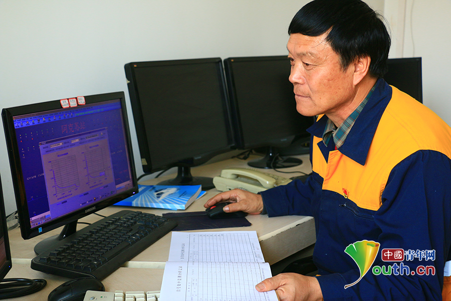 邰芳鵬年近60歲,雖然體力上不如年輕人,但他從來不服輸。如今,南疆鐵路已升級為計算機聯(lián)鎖設(shè)備,邰芳鵬也緊跟時代步伐,學(xué)習(xí)計算機操作。現(xiàn)在他對計算機監(jiān)測設(shè)備也能進行熟練操作和分析。中國青年網(wǎng)通訊員姚旭東 攝