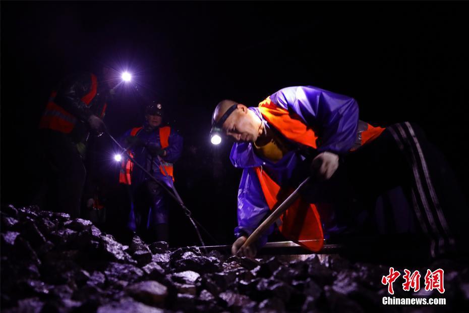 倒春寒的天氣讓江西各地“陰晴不定”。3月19日晚間,位于京九鐵路江西南昌至九江區(qū)段,百余名鐵路工人頭頂著燈光在寒雨中進行更換枕木施工作業(yè)。文/汪翰 李利群 圖/汪翰