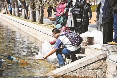 亮馬河投放8000尾白鰱魚(yú)和花鰱魚(yú)