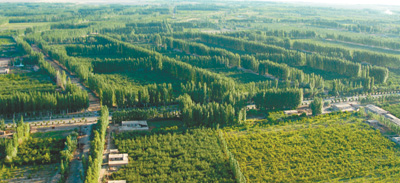 1986年,地委下定決心,在風(fēng)沙策源地柯柯牙啟動綠化工程。30多年來,克服重重困難,先后組織近210萬人次,進(jìn)行37次綠化造林大會戰(zhàn),筑起了一條集生態(tài)林、經(jīng)濟(jì)林于一體的防風(fēng)治沙“綠色長城”。亙古荒原、風(fēng)沙之源,變成了生態(tài)屏障、綠洲果園。