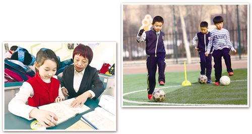 天津市河西區(qū)梧桐小學學生在進行課后足球訓練。 劉東岳攝