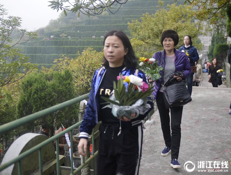 4月5日清明節(jié)上午,前往浙江省定舟山市定海區(qū)清陵掃墓人絡(luò)繹不絕,不少掃墓人用鮮花祭祀,寄托哀思懷念逝去的親人,倡導環(huán)保綠色的清明。(浙江在線拍友 胡社友 攝)