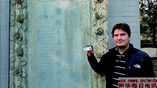 由于對(duì)中國(guó)歷史感興趣,這位法國(guó)小伙子知道了利瑪竇,因?yàn)閷?duì)利瑪竇的崇拜,他把利瑪竇生前的尊號(hào)“西泰”二字作為自己的中文名,并在清華大學(xué)登記入學(xué)。他沒(méi)有想到,利瑪竇的墓碑竟然在北京,更讓他沒(méi)想到的是這塊墓地被中國(guó)政府認(rèn)定為全國(guó)重點(diǎn)文物保護(hù)單位。