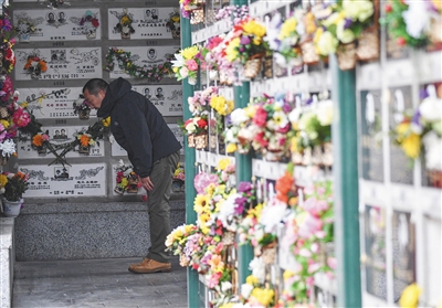 4月5日,市民前往萬安公墓祭奠。將骨灰盒放入墻內(nèi)骨灰格的立體安葬方式,成為眾多家庭的選擇。新京報(bào)記者 陶冉 攝