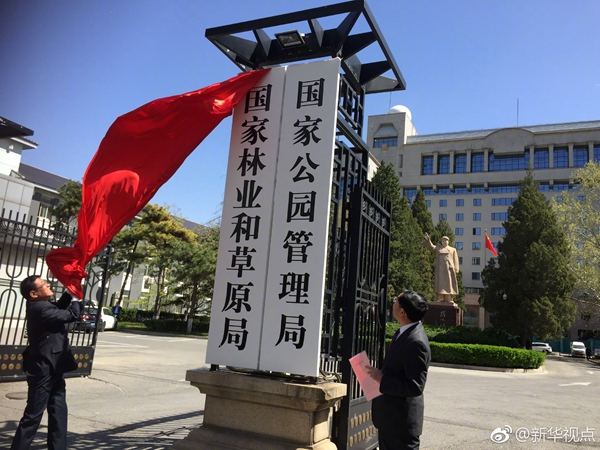 新華網(wǎng)北京4月10日電? 國家林業(yè)和草原局、國家公園管理局10日正式揭牌,由自然資源部管理,這對統(tǒng)籌山水林田湖草系統(tǒng)治理具有重要意義。(記者 侯雪靜 胡璐) ????(據(jù)新華社“新華視點”微博)
