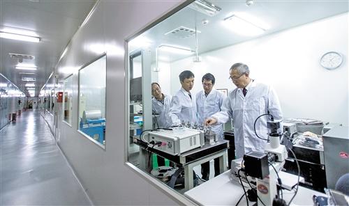中國科學(xué)院院士羅俊教授(右)在華中科技大學(xué)引力實驗中心與科研人員交流實驗情況。新華社記者 熊琦攝