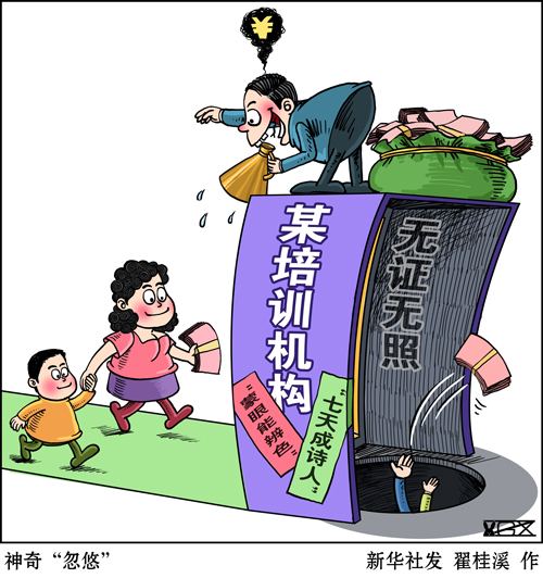 近年來,功利教育觀大行其道,培訓(xùn)市場(chǎng)魚龍混雜,推波助瀾。不少家長架不住廣告“忽悠”,老師“洗腦”,報(bào)班花費(fèi)成千上萬,可到頭來沒讓孩子練就“開掛”本領(lǐng),反被部分培訓(xùn)機(jī)構(gòu)坑錢、坑娃、坑智商。種種洗腦式營銷,消費(fèi)家長們的焦慮,加劇拔苗助長的功利心,違背了教育育人為本的初心。