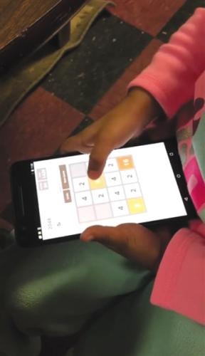 一名兒童正在安卓系統(tǒng)的智能手機上玩“2048”游戲,進行iCare軟件的實驗。受訪者供圖 圖片來源:新京報