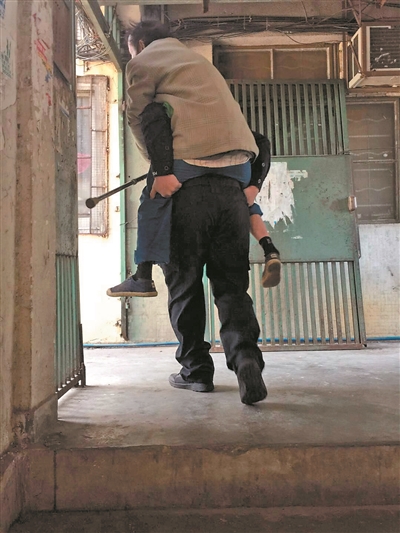 到了樓下,擔(dān)心老人家爬樓梯會身體吃不消,龍彬二話不說就蹲了下去,讓老人趴在自己背上,沒幾分鐘,一口氣將老人背到5樓家中。龍彬說,老人很瘦弱,只有80多斤重,加上有同事在旁照應(yīng),自己才中間沒休息。