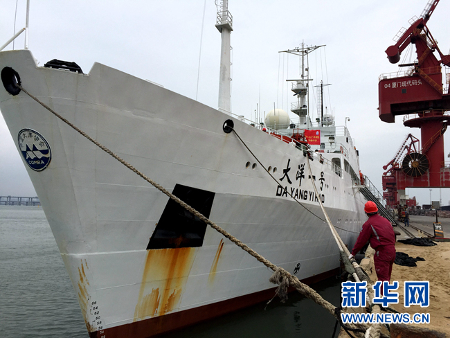 ??? 這是4月15日拍攝的停靠在廈門現代碼頭的“大洋一號”科考船。當日,搭載“潛龍三號”無人無纜潛水器和70名科考隊員的“大洋一號”科考船從廈門起航,奔赴南海執(zhí)行“大洋一號”綜合海試B航段科考任務。這也是目前我國最先進的自主無人潛水器“潛龍三號”首次出海。新華社記者 劉詩平 攝