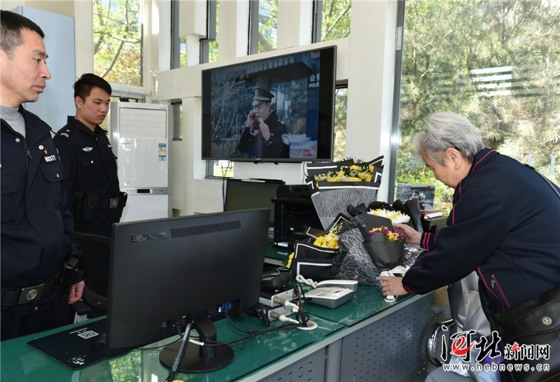 4月6日,一位市民來到石家莊市呂建江綜合警務(wù)服務(wù)站,在呂建江同志生前工作過的地方送上一束鮮花寄托哀思。