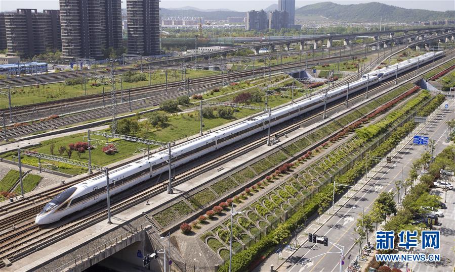 4月9日,一列“復(fù)興號”動車組列車行駛在京滬高鐵南京市境內(nèi)。國家統(tǒng)計局4月17日發(fā)布數(shù)據(jù),初步核算,一季度國內(nèi)生產(chǎn)總值198783億元,按可比價格計算,同比增長6.8%。 新華社發(fā)(蘇陽 攝)