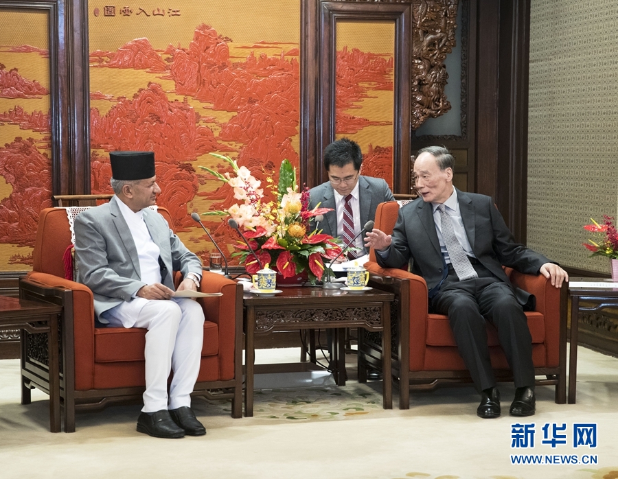 王岐山表示,中尼交往源遠(yuǎn)流長(zhǎng),是經(jīng)過歷史檢驗(yàn)的好鄰居、好朋友。在兩國(guó)領(lǐng)導(dǎo)人共同引領(lǐng)下,中尼關(guān)系持續(xù)健康發(fā)展,各領(lǐng)域合作穩(wěn)步推進(jìn)。中國(guó)改革開放和社會(huì)主義現(xiàn)代化建設(shè)中,一條很重要的經(jīng)驗(yàn)是處理好穩(wěn)定與發(fā)展的關(guān)系,穩(wěn)定是發(fā)展的前提,發(fā)展是穩(wěn)定的基礎(chǔ)。中方高興看到尼泊爾完成政治轉(zhuǎn)型,將國(guó)家建設(shè)重心轉(zhuǎn)移到發(fā)展經(jīng)濟(jì)上來(lái),支持尼保持團(tuán)結(jié)穩(wěn)定,實(shí)現(xiàn)發(fā)展目標(biāo)。希望雙方共同落實(shí)好已有共識(shí)和協(xié)議,以“一帶一路”建設(shè)為契機(jī)拓展全方位合作,推動(dòng)兩國(guó)關(guān)系發(fā)展到新高度。