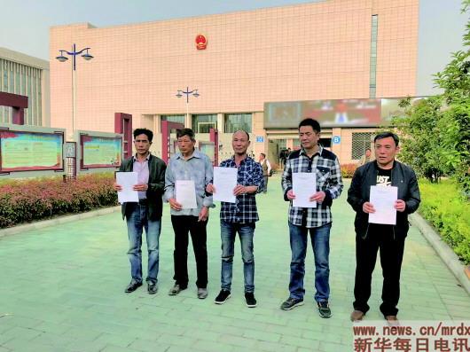 2018年4月11日,案件改判后,周繼坤(右一)等五人合影?!≠Y料圖片