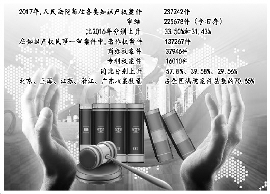 針對這些情況,人民法院在充分發(fā)揮司法保護(hù)主導(dǎo)作用,加大保護(hù)力度的同時,加強(qiáng)知識產(chǎn)權(quán)審判領(lǐng)域改革創(chuàng)新,除設(shè)立3家知識產(chǎn)權(quán)法院外,還積極探索設(shè)立跨區(qū)域管轄的知識產(chǎn)權(quán)專門審判機(jī)構(gòu)。