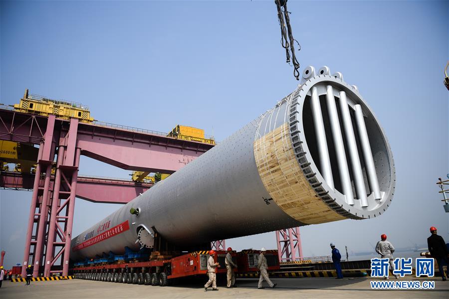 4月28日,江蘇鎮(zhèn)江,工人在給260萬噸/年沸騰床渣油鍛焊加氫反應(yīng)器做發(fā)運前的準(zhǔn)備工作。新華社記者李響 攝