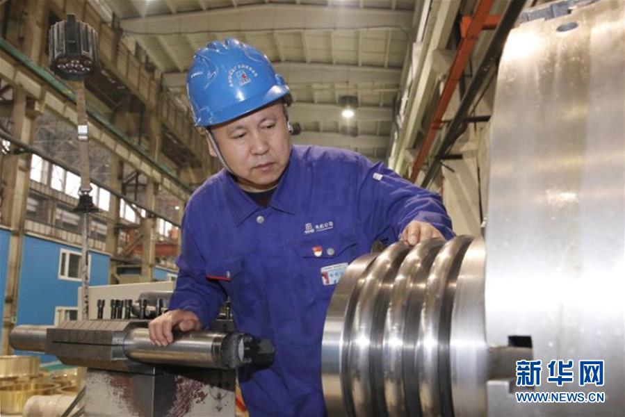 “首屆中國質(zhì)量工匠”、哈爾濱電機廠有限責任公司車工裴永斌在車間工作(資料照片)。新華社發(fā)