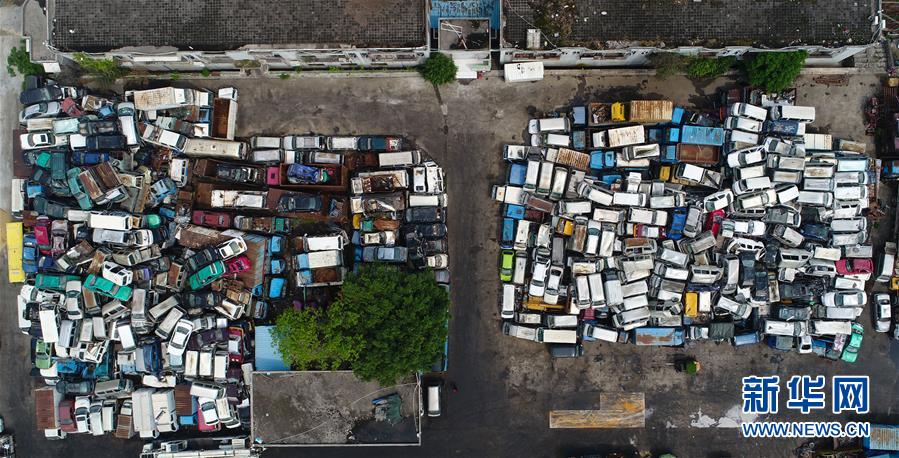 廣州市金屬回收有限公司購銷部堆放的報廢汽車(4月17日無人機拍攝)。新華社記者 鄧華 攝