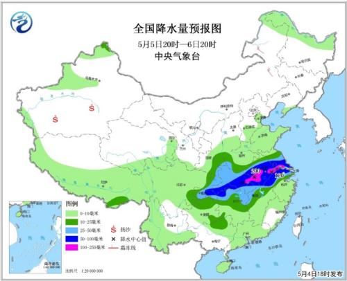 具體來看,預(yù)計(jì)4日20時至5日20時,西南地區(qū)東部、江漢東部、江淮等地的部分地區(qū)有大雨,重慶南部、湖北東北部和西南部、河南南部、安徽中部等地有暴雨(50~60毫米),局部地區(qū)有大暴雨(100~120毫米)。