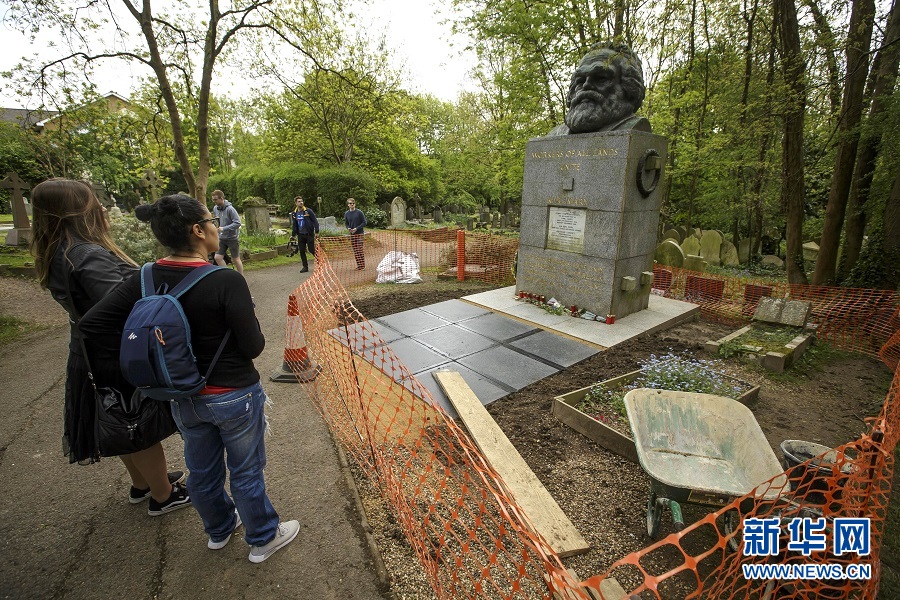 歷史長河奔流不息,真理之光穿越時空。1818年5月5日,德國小城特里爾,一代偉人馬克思誕生。200年后,世界東方。高擎馬克思主義的精神火炬,在習(xí)近平新時代中國特色社會主義思想指引下,中國共產(chǎn)黨正領(lǐng)導(dǎo)億萬人民書寫人類發(fā)展史上新的奇跡。這是2018年5月3日,在英國倫敦北部海格特公墓,人們來到正在進(jìn)行維修的馬克思墓前參觀。 新華社發(fā)(蒂姆·愛爾蘭攝)