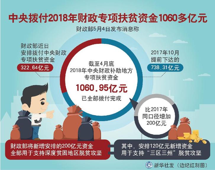 中央撥付2018年財(cái)政專項(xiàng)扶貧資金1060多億元;
