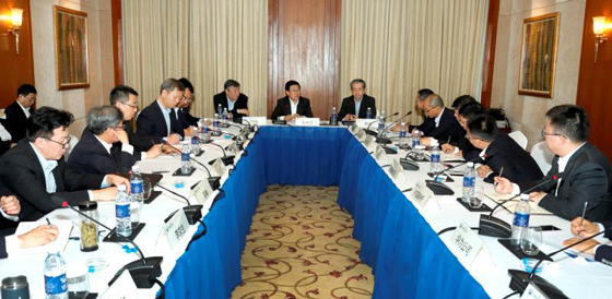 中國駐柬埔寨大使熊波,公安部副部長李偉,云南省副省長、公安廳廳長任軍號參加座談會。(圖:滿博)
