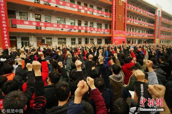 資料圖:一所中學(xué)舉行高考百日誓師大會。