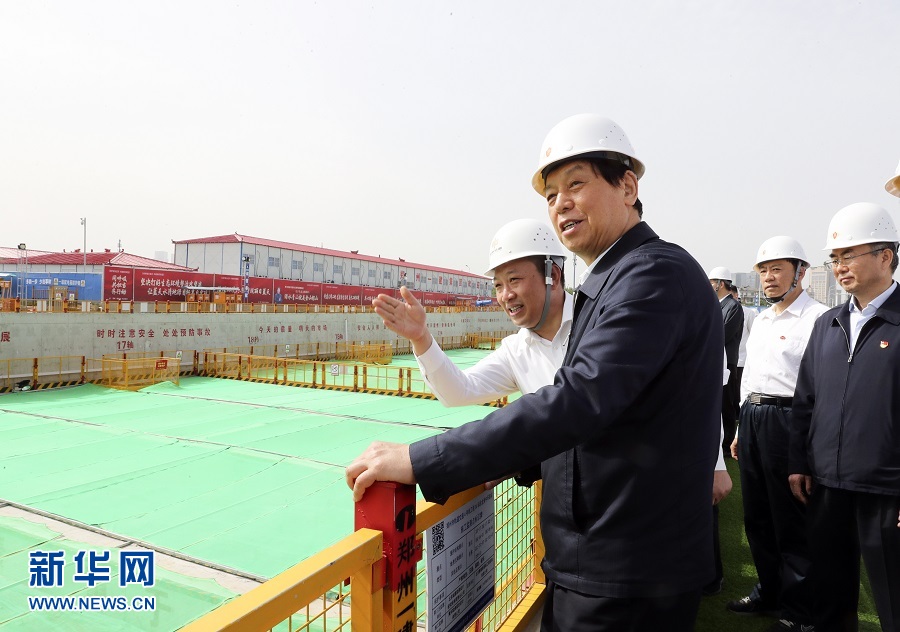 5月24日至28日,中共中央政治局常委、全國(guó)人大常委會(huì)委員長(zhǎng)栗戰(zhàn)書在河南檢查大氣污染防治法實(shí)施情況。這是5月27日,栗戰(zhàn)書在鄭州市軌道交通4號(hào)線龍湖中環(huán)路站建設(shè)工地檢查。新華社記者丁林?jǐn)z