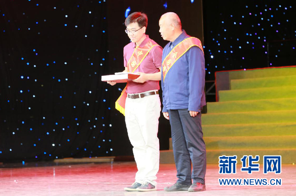嘉賓為張延波(左)頒發(fā)道德傳家寶。 新華網(wǎng) 楊喜龍攝