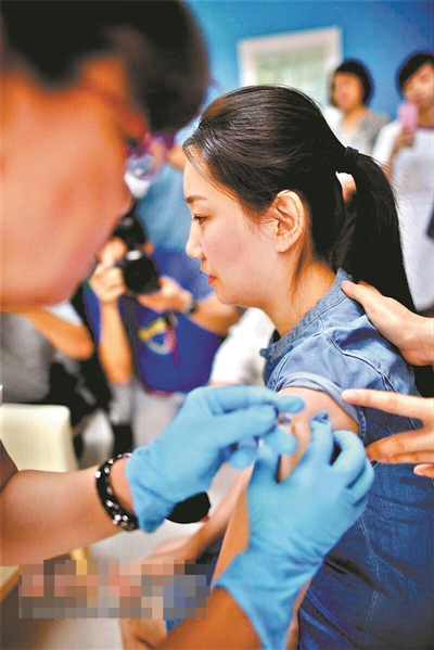 史佳雨在接種HPV9價(jià)疫苗。(圖片來(lái)源:海南日?qǐng)?bào))