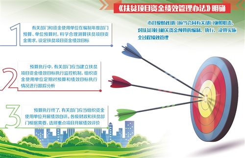 扶貧項目資金績效管理如何開展?《辦法》要求,市縣級財政部門應當會同有關部門依照職責,對扶貧項目相關資金預算的編制、執(zhí)行、決算實施全過程績效管理。