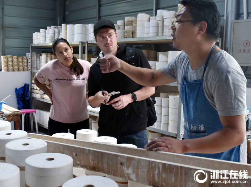 2018年6月3日,來自30多個國家的70多名留學(xué)生,在武義漢坊婺窯認真學(xué)習(xí)修坯、上釉等環(huán)節(jié)。