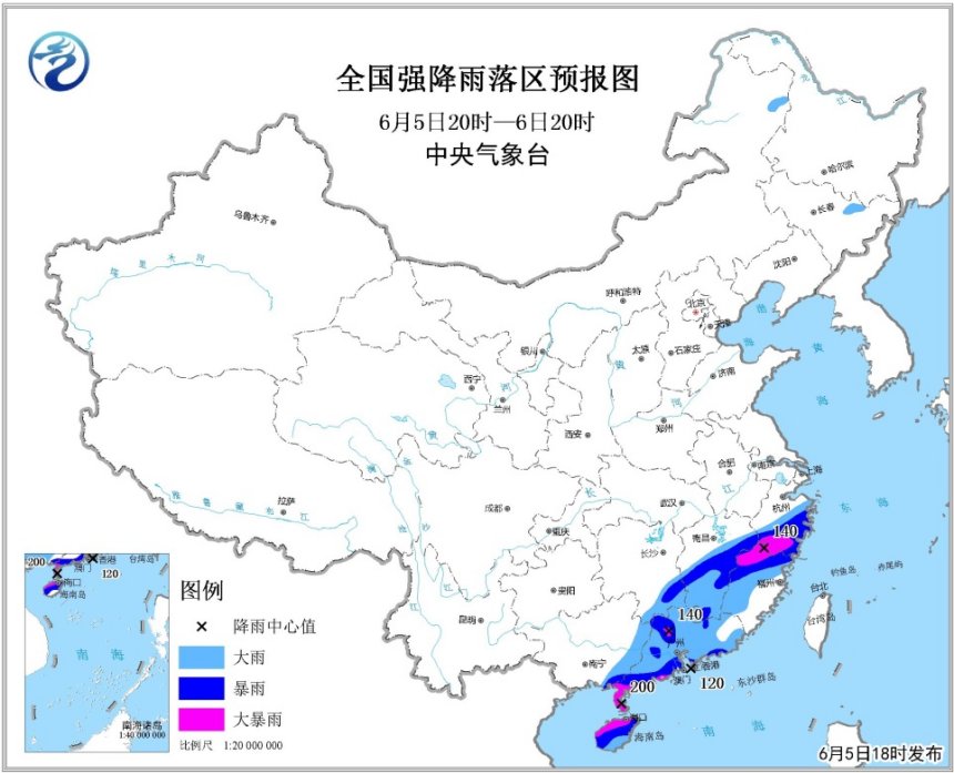 許映龍:南海的熱帶低壓于6月5日8時(shí)加強(qiáng)為今年第4號(hào)臺(tái)風(fēng)。5日16時(shí),第4號(hào)臺(tái)風(fēng)的中心位于海南省文昌市東偏南方向約85公里的海面上,中心附近最大風(fēng)力有8級(jí)(18米/秒)。目前,第4號(hào)臺(tái)風(fēng)以每小時(shí)20公里左右的速度向北偏西方向移動(dòng),并逐漸向我國(guó)海南東南部沿海靠近,并將于5日夜間至6日上午擦過(guò)或登陸海南東北部沿海(熱帶風(fēng)暴級(jí),20-23米/秒,8-9級(jí)),6日下午至7日早晨登陸廣東西部沿海(熱帶風(fēng)暴-強(qiáng)熱帶風(fēng)暴級(jí),20-25米/秒,8-10級(jí))。