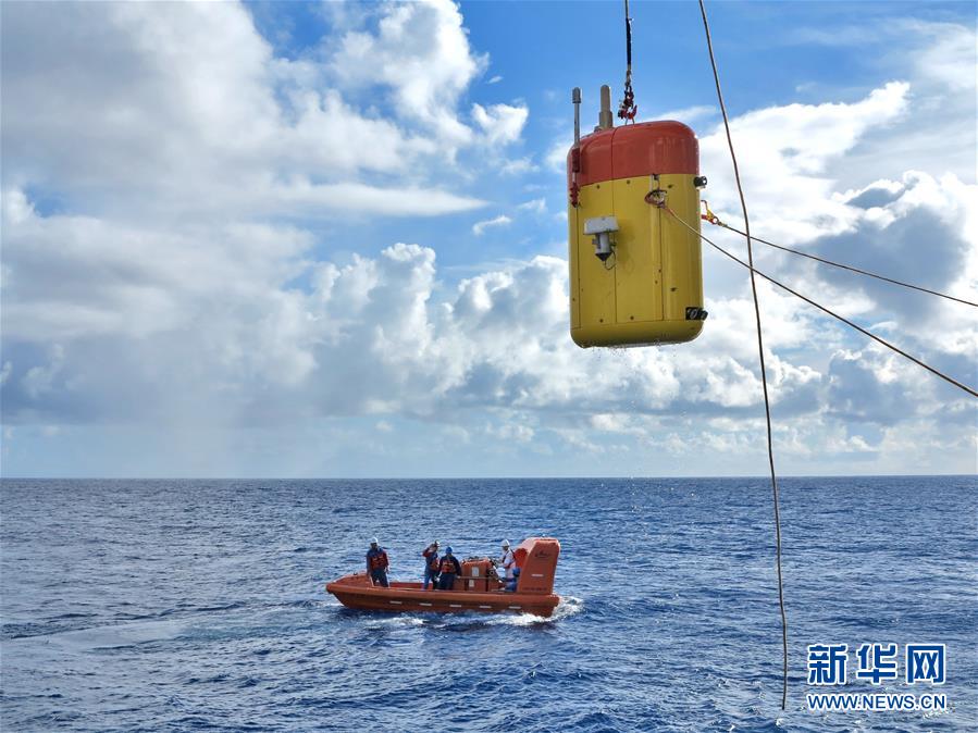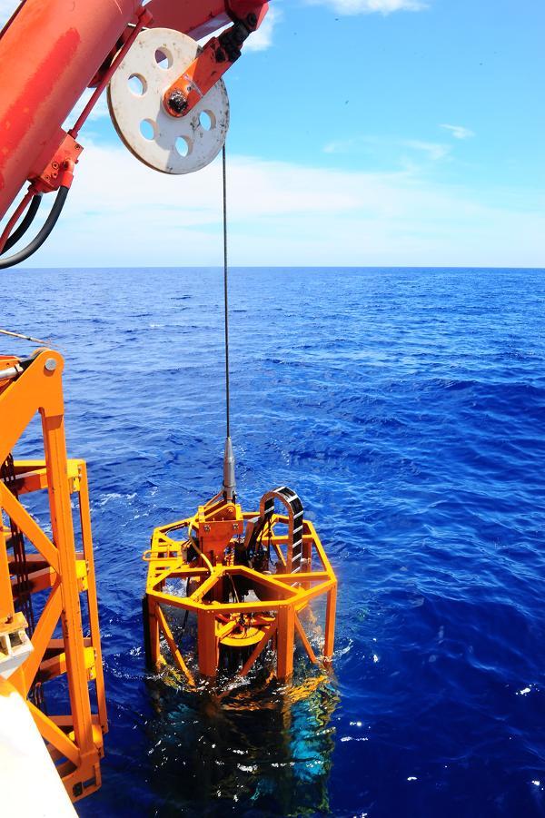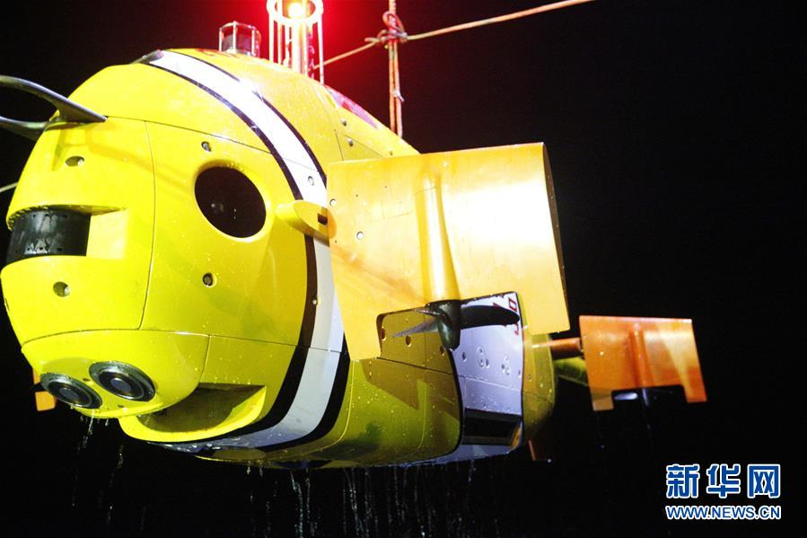 “海斗”號自主遙控水下機(jī)器人在西太平洋進(jìn)行下潛實(shí)驗(yàn)(2016年7月18日攝)。新華社發(fā)(沈陽自動化所提供)