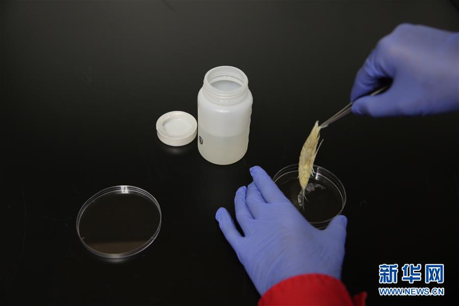 科考人員在“探索一號”船上整理從深海獲取的生物樣品鉤蝦(8月12日攝)。新華社記者 金立旺攝