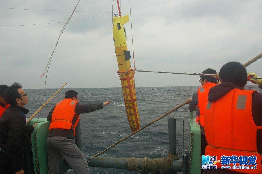 "海燕"號水下滑翔機(jī)在南海北部下海測試(3月16日攝)。