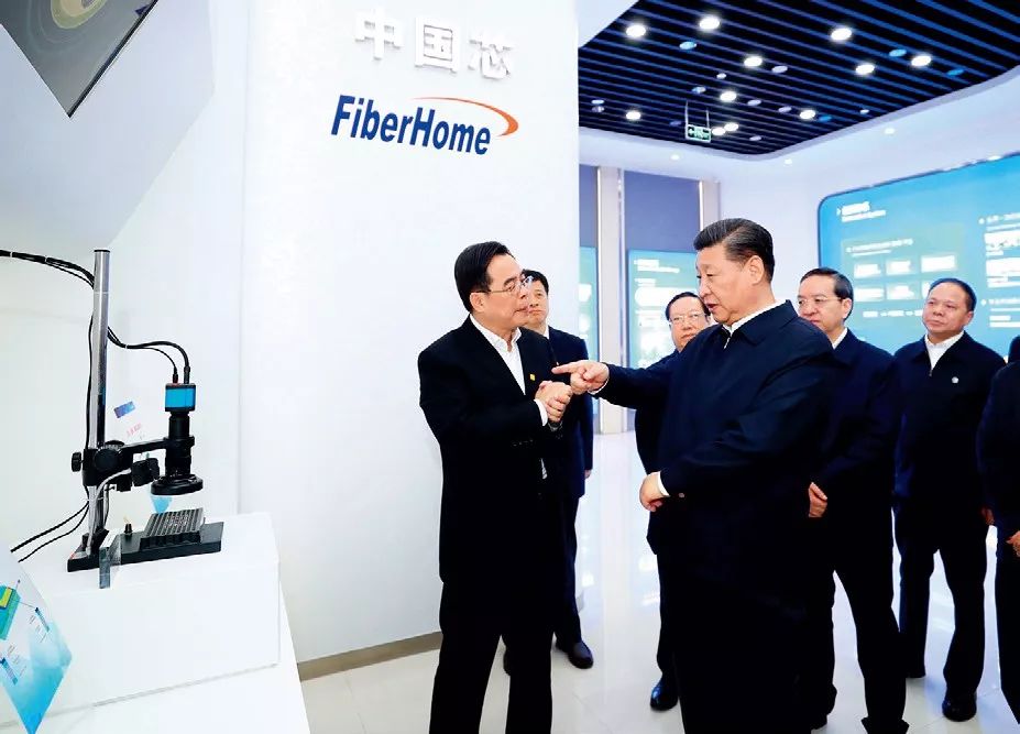 ▲ 4月26日上午,習(xí)近平總書記在位于武漢東湖高新區(qū)的烽火科技集團(tuán)考察企業(yè)創(chuàng)新發(fā)展情況 謝環(huán)馳攝