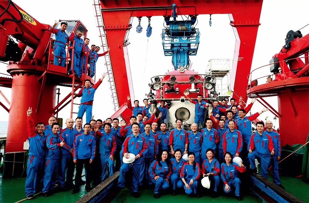 ▲ 5月23日,“南海深部計(jì)劃”西沙深潛航次的部分考察隊(duì)員在“深海勇士”號前合影 張建松攝