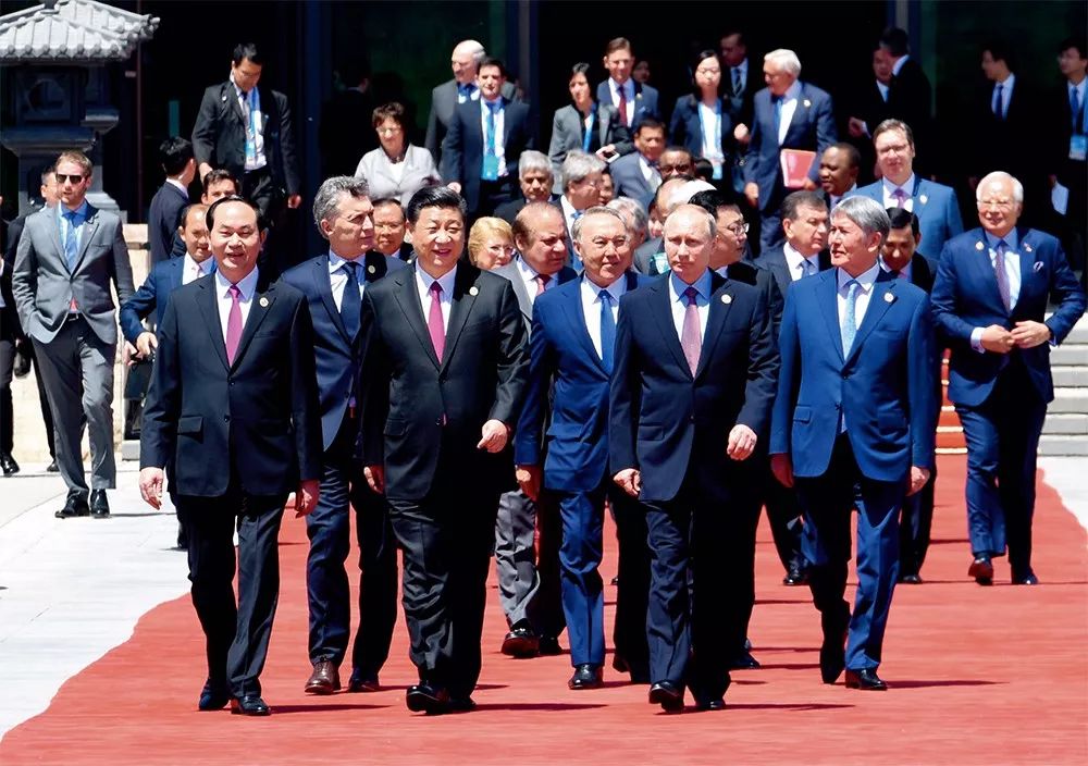▲ 2017年5月15日,在北京雁棲湖舉行的“一帶一路”國際合作高峰論壇第一階段會議結(jié)束后,習(xí)近平主席同與會領(lǐng)導(dǎo)人和國際組織負(fù)責(zé)人步出雁棲湖國際會議中心 饒愛民攝