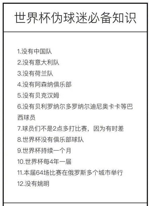 就在今晚,四年一度的足球盛宴——世界杯將在莫斯科拉開戰(zhàn)幕。阿森納俱樂部參不參加世界杯?怎么沒有中國(guó)隊(duì)?羅納爾多能奪得最佳射手嗎?......呃,為了防止你看球時(shí)提出一些暴露身份的問(wèn)題,這份世界杯必備小知識(shí)請(qǐng)一定收好。享受世界杯,享受激情,拒絕尬聊!