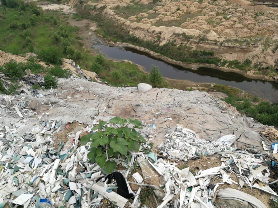 現(xiàn)場檢查發(fā)現(xiàn),在大沙河定州段遠(yuǎn)遠(yuǎn)望去,河堤上堆滿了生活垃圾、工業(yè)廢渣、邊角料、醫(yī)療廢物等多種固體廢物,各種垃圾“應(yīng)有盡有”,形成了一個(gè)長約3公里的“垃圾帶”。與長度同樣驚人的,是“垃圾帶”的寬度,垃圾一直從河堤延伸至河床上,斜坡高度達(dá)到10米左右。