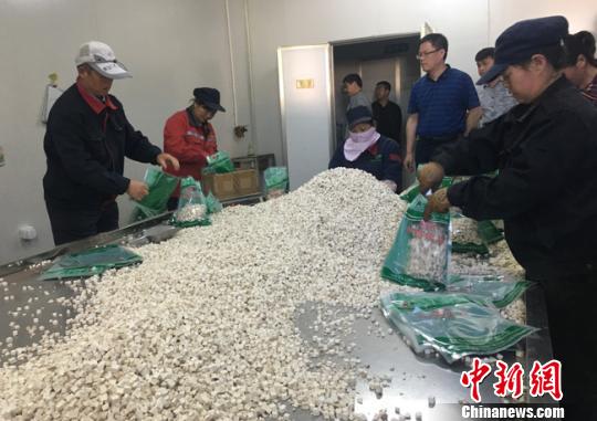 清水縣白沙鄉(xiāng)溫泉村的生物科技有限責(zé)任公司為當(dāng)?shù)剞r(nóng)民免費(fèi)提供技術(shù)指導(dǎo)和種子化肥,既解決銷售渠道問題,又降低種植風(fēng)險(xiǎn),公司安置貧困戶就業(yè)近20人。圖為當(dāng)?shù)刎毨粽诎b中藥材?!堟?攝