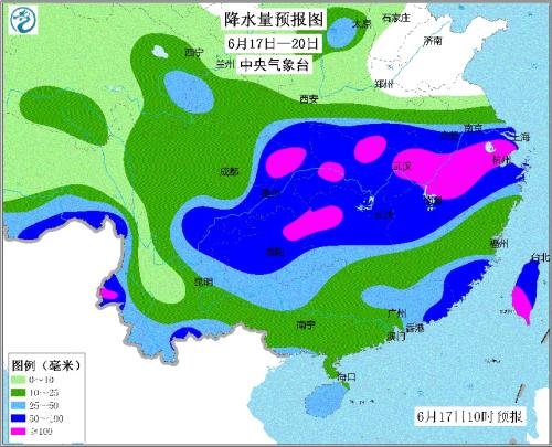 根據(jù)中央氣象臺的預(yù)報,17日至20日,從四川盆地東部至長江中下游地區(qū)將有一次強(qiáng)降雨過程,強(qiáng)降雨影響地區(qū)涉及十余省份。